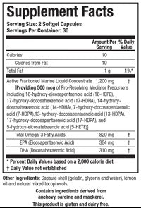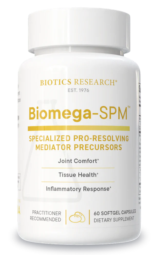 Biomega-SPM™ delivers an industry-leading 500 μg/serving of SPM precursors - specific omega-3 metabolites that serve as the foundational building blocks for Specialized Pro-Resolving Mediators (SPMs) produced naturally by the body. Utilizing a proprietary supercritical extraction with 8-stream fractionation, our comprehensive formula features 7 identified precursors to SPMs that support the body's resolution phase in the inflammatory cascade.*